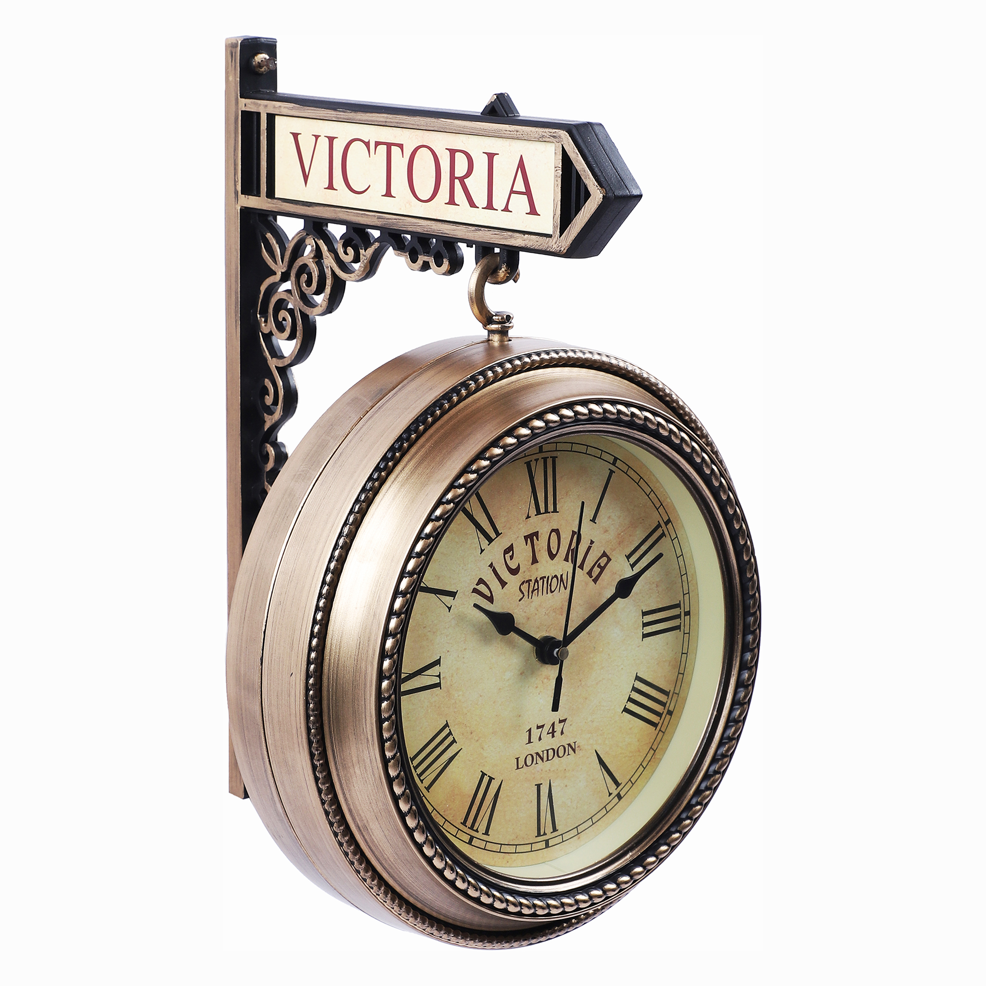 Vintage Plastic Double Sided 13 inches Victoria Station Wall Clock for Home, Office & Café Décor | Classic Railway Style Decorative